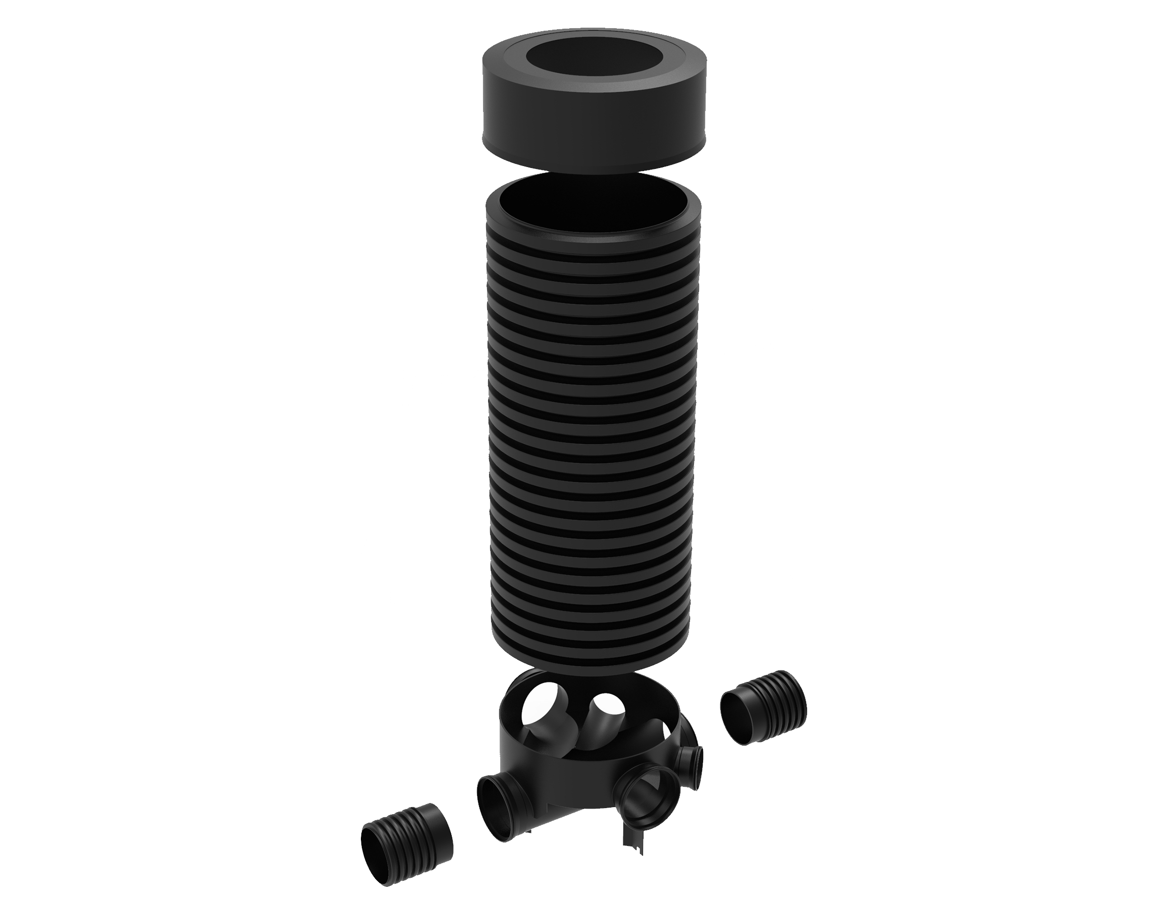 • 600mm internal ø, 150mm twinwall c/w 2 x 160mm EN1401 side inlets at 90° & 2 x 110mm